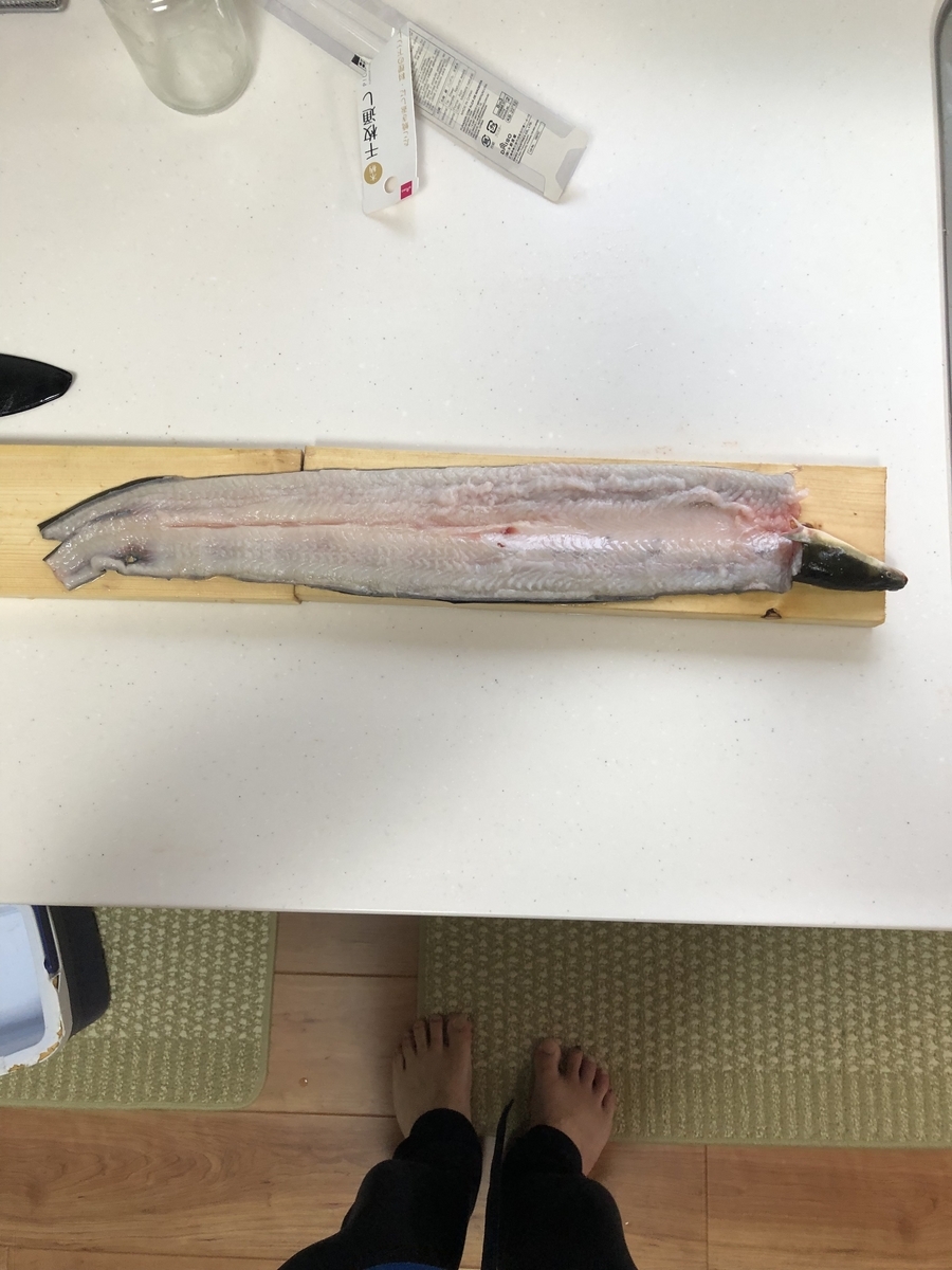 昨日釣れたウナギ、もう少し泥抜きをしたかったのですが、ほぼ動かなくなったので早々に捌きました。